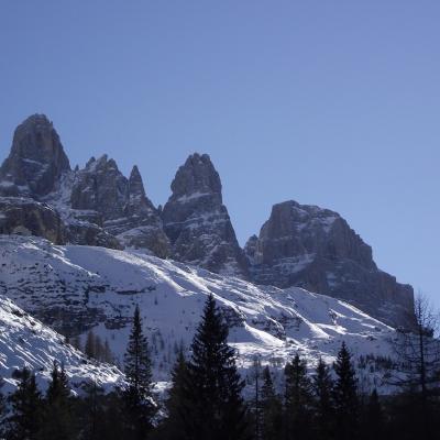 Il cielo è terso, l'azzurro è intenso, nella notte e nelle giornate precedenti ha tirato con violenza vento da nord, la neve non è più candida e immacolata; è disseminata d'aghi d'abete, la nostra traccia degli sci è continuamente interrotta da rami e arbusti spezzati dal signor Eolo che con la sua forza a creato pericolosi accumuli nevosi che ci impediscono un avvicinamento rilassante.